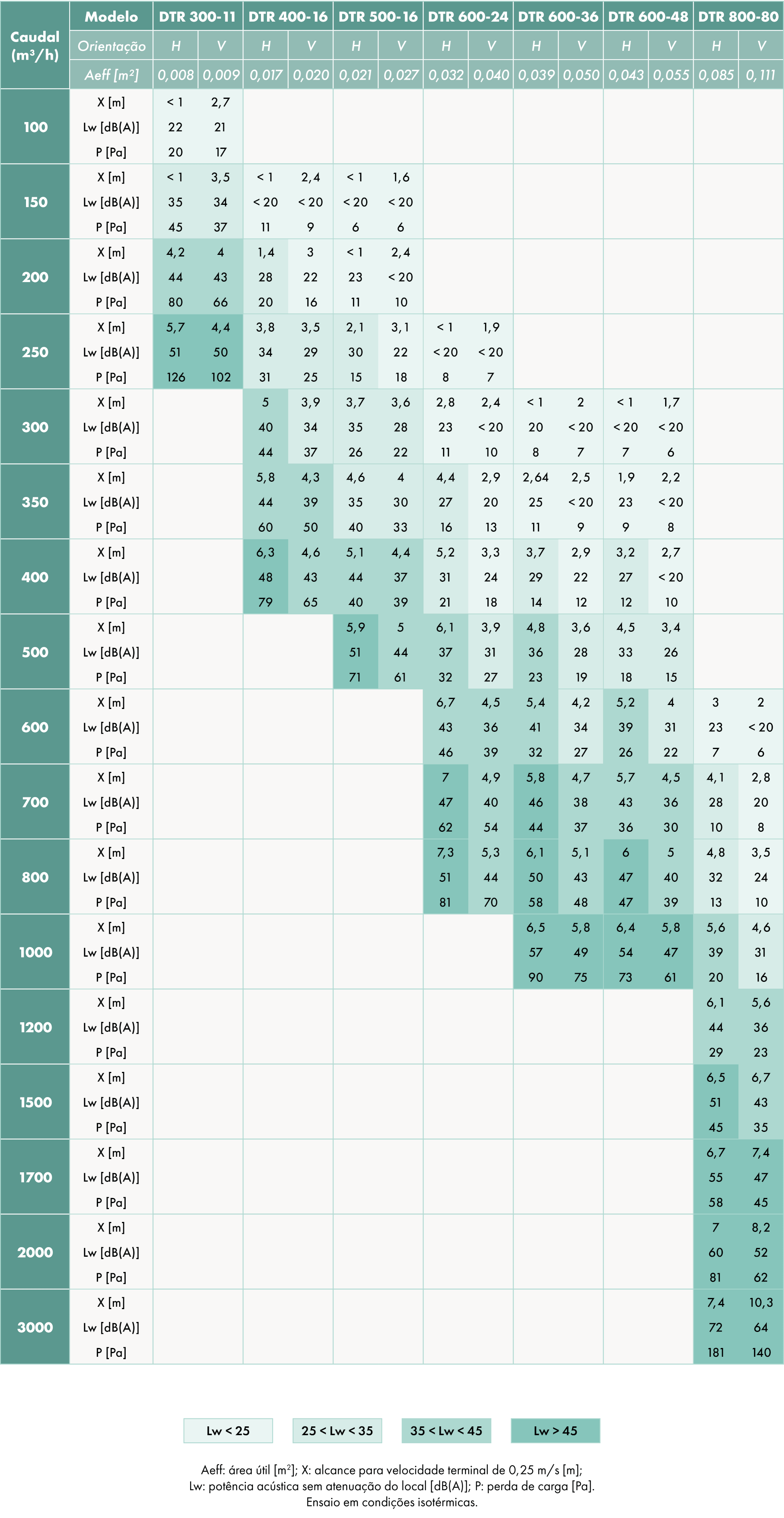 - Caudais indicativos de 100 até 3000 m³/h (tabela de seleção).